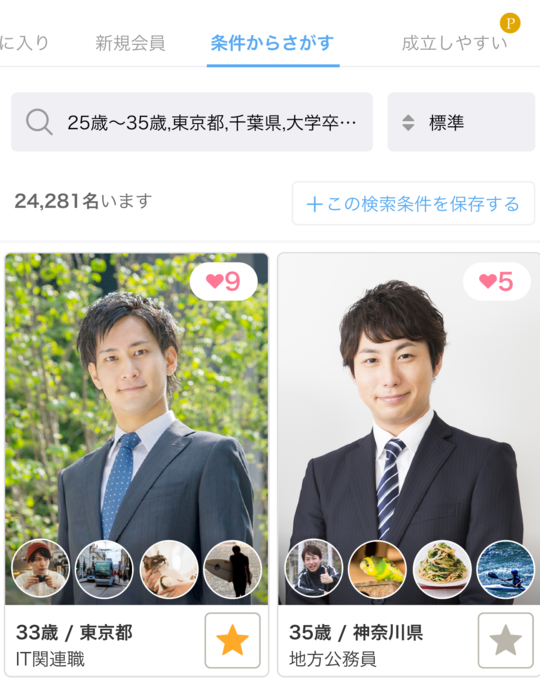 条件検索も細かく設定できるので、自分に合った方を無理なく探しやすい仕組みです。